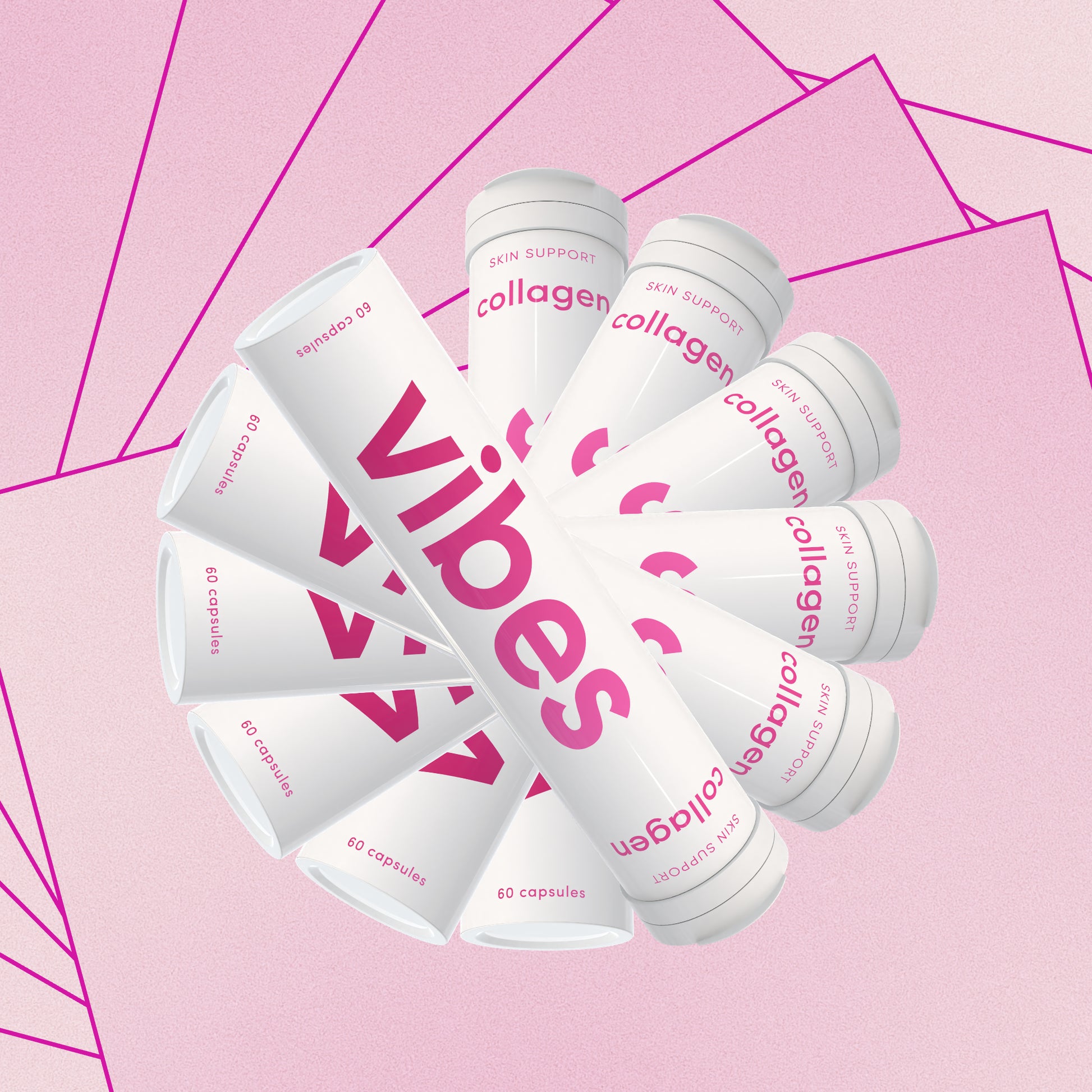 Collagen by Vibes is a daily beauty formula designed to support firmer, smoother, more radiant-looking skin from within.